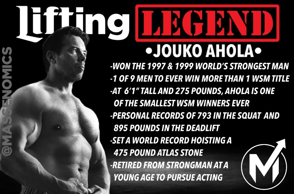 Jouko is best known for winning both the 1997 and 1999 worlds strongest man and finished second in 1998. Jouko ahola born 1 december 1970 is a former strongman power lifter and actor from finland. He is a finnish former powerlifter strongman and actor. Jouko is best known for both capturing the strongest man of the world in 1997 and 1999 and coming second in 1998. He managed to get 2nd place in 1998 as well. Jouko was a very successful strongman competitor at 6 1 185 m and 275 lbs 125 kg corresponding to a bmi of 358 which is low by wsm standards.